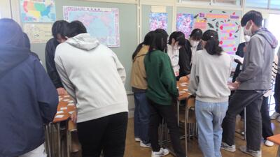 今週は、校外学習の事後学習として、各クラスでスライドを使った発表を行いました。発表では、班ごとにテーマを設定し、事前に調べた内容を整理してまとめたものを発表しました。どの班も分かりやすく伝えるために、写真を取り入れたり、スライドの構成を工夫したりしていました。今回の活動を通して、調べたことを自分の言葉で説明する力や、聞き手に分かりやすく伝えるプレゼンテーション力を養うことができました。