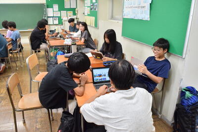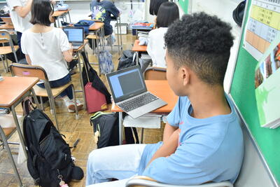 1年生と2年生では写真のスライドショーが流され、1学期の思い出を振り返っていました。