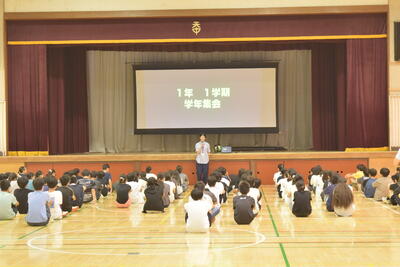 今日は各学年の学年集会が行われ、学期のまとめの会が行われていました。