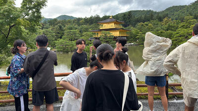 かなりの雨が移動中降ってきましたが、金閣寺の班が見学を始めた時には止んでいました。