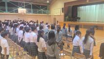 昨日の学校朝会終了後、2年生は体育館に残り学年集会を行いました。
