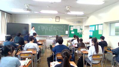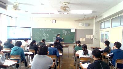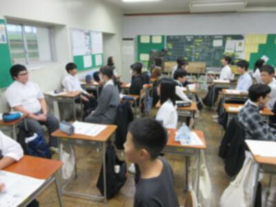 5日、1時間目の数学の授業は「相似の図形の活用」の単元でした。難しい内容ですが、理解しようと落ち着いてよく聞いていました。
