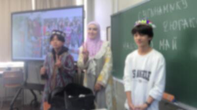 限られた時間の中でしたが、子どもたちも、クイズに答えたり、民族衣装を着たりして、交流を楽しんでいました。