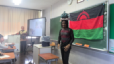 マラウイ出身のバンダさんは、生徒にも分かるような英語で説明してくださり、英語を学ぶ機会にもなりました。シマという主食の作り方荷や物を頭の上にのせて運ぶ様子を実演してくださったり、国旗の色やデザインが何を表しているのか説明してくださりました。