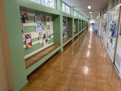 この2つの場所は、普通にありそうなものですが、設置されている学校は少ないと思います。特に教室前に長く設置されているベンチは珍しいと思います。