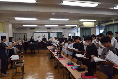 体育館練習が終わった後も、教室でパートに分かれてポイントを確認したり、発声について互いにアドバイスを送り合ったりと、とても積極的です。