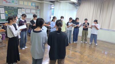 本日は音楽発表会の学年練習があるため、正装でKOTODAMAに取り組んでいました。