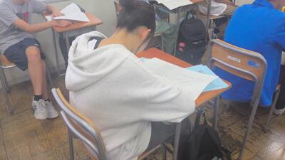 学活の授業では、第2回定期考査の個票の返却と音楽発表会の意気込みの記入を行いました。