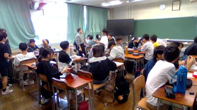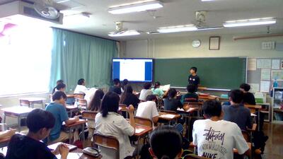 夏休みの宿題となっていたプレゼンテーション資料をもとに、それぞれの体験先で行った仕事内容や、体験中に心に残ったことなどを発表しました。