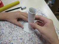 陶芸作品で「笑顔にさせる花瓶」の試作を1時間で紙粘土を使って作りました。みんな器用に作り、楽しんでいました。