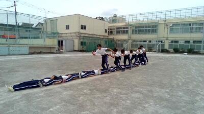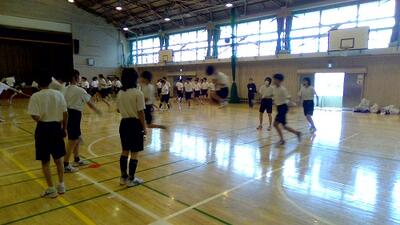 隊形や準備体操、全員リレー、蛇の皮むきの練習をしました。
