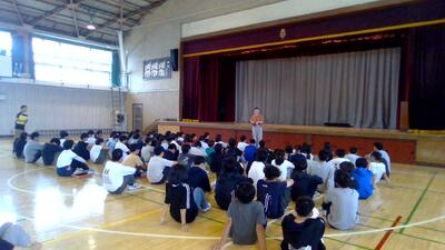 学校朝会で実習生のお別れの言葉を聞いた後に学年集会がありました。