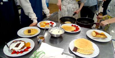 本日のメニューはクレープ!各班盛り付けを工夫していました。