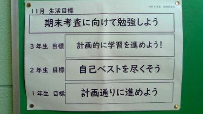 三連休明けの第2学年の授業は、全クラスとも実技教科【A組は技術科、B組は家庭科、C組は音楽科】でした。特別教室での授業となり、普段過ごしている3階の教室や廊下は、とても静かでした。そして、どのクラスも電気がしっかり消灯されていました。節電意識、SDGsの意識を今後も高めていきましょう。