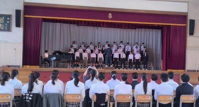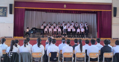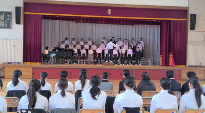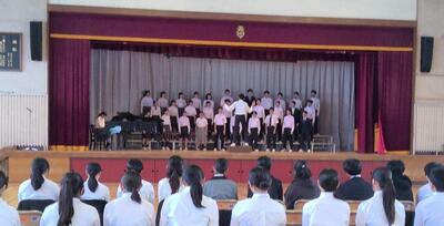別のクラスでも、迫力のある合唱に真剣に聴き入る1年生…。