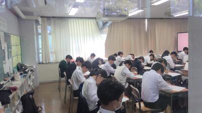 週明けの月曜日、3年生は1校時から5校時にかけて「復習確認テスト」を実施しました。
