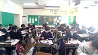 9日の③④時間目に、3年生が各教室で一斉に書初めを行いました。止め、はね、はらいなどに注意して、丁寧に書くことを意識しました。楷書は「志を遂げる」、行書は「穏やかな海」でどちらも5文字!です。私も書いてみましたが、5文字はバランスを取るのが本当に難しいです。廊下に生徒の力作が並び、新春らしい風情になりました。