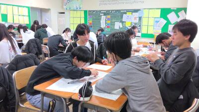 今日4時間目の授業は、ゲストティーチャー・副校長先生のお話でした。普段あまり聞くことができない副校長先生自身のお話を興味深々に聞き、「これからの社会に必要な力」を話し合いながら学習しました。