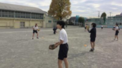 1年A組では保体の時間で校庭でソフトボールを行っていました。