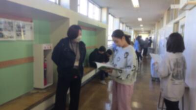 テスト間の休み時間では,前の時間のテストの振り返りを行う生徒や次の時間のテストの勉強をする生徒がいました。