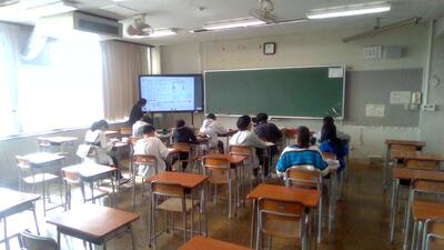 方程式の授業です。小テストを繰り返し、基礎の習得に励んでいます。
