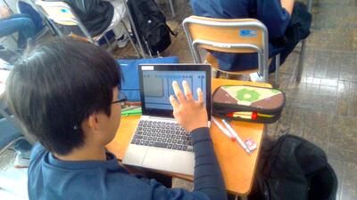 絵の具を用いて絵を制作しました。自分の作品をタブレットで写真に撮り学習支援アプリに提出し、教師が画面を配信して作品を発表、鑑賞しています。