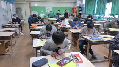 終業式の後の学活では、担任の先生から冬休みの過ごし方や2学期の振り返りなどの話がありました。