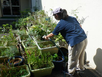 お盆明けの朝にボランティア部の生徒が水やりを行いました。