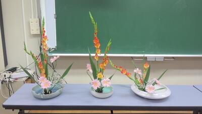 華道部は、今日はクリスマスアレンジメントを作成しました。