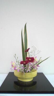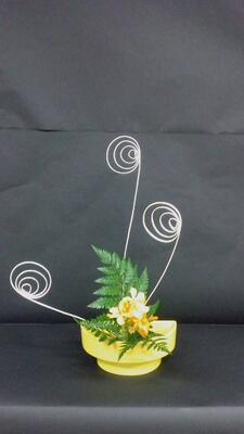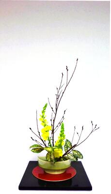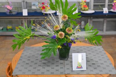 今日から新入部員も入部して、さっそくお花をいけて作品を完成させました。