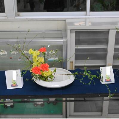 サロンに華道部の作品を展示しています。是非ご覧ください。