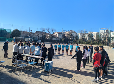 ソフトテニス部は自主性を大切にしており、今回の練習試合も生徒から「先生、2/9に練習試合に行かせてくだい」と申し出があり、遠征先を探しました。