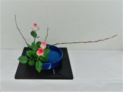 今日の活動では、バラと赤目柳をいけました。今日のポイントは長く直線的な赤目柳を曲線的にいけることができるかどうかです。