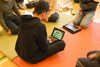 百人一首大会の後は、小中連携ミライということで、小学生が中学校に対する疑問や質問をする時間がありました。