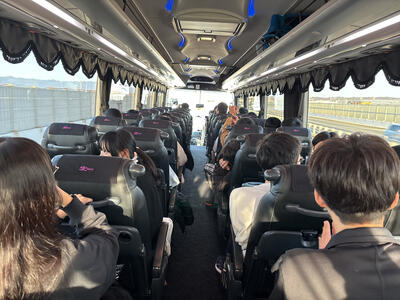 A組のバスの中は賑やかにゲームで楽しんでいます。