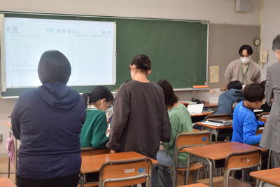 若手育成研修の一環でしたが、東京都のデジタルを活用したこれからの学びの研究事業と合わせて授業を行いました。個別最適な学習と協働的な学習の一体的な充実のためにどんなことができるのかを工夫して授業を行いました。