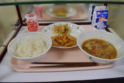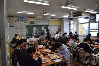 2年生のクラスでは、先生が配って歩くと食缶が全てからになっていました