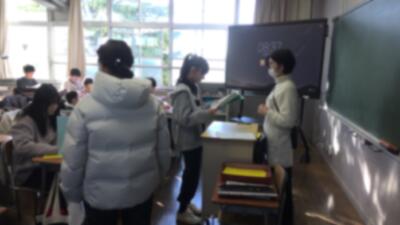 1年B組では、音楽の授業で「地球星歌」を歌っていました。