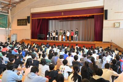 生徒会長からは、運動会の今年の生徒会種目を応援合戦にするとアナウンスがありました。