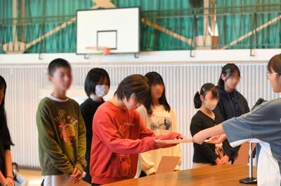 生徒朝会でした。今日の生徒朝会では、認証式で各委員会の委員長に委嘱状が手渡されました。