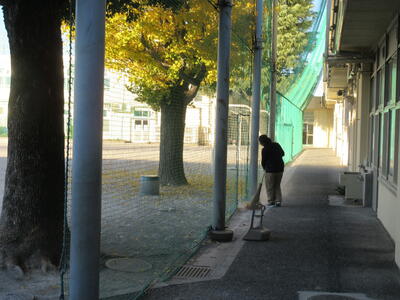 イチョウは土に還りにくく、積もってしまうと足を滑らせることもあります。朝、グラウンドの様子を見ると主事さんがほうきをもって掃除をしていました。生徒の皆さんが学校に来る前にも掃除をしている主事さんたち。皆さん元気に挨拶をしていますか。