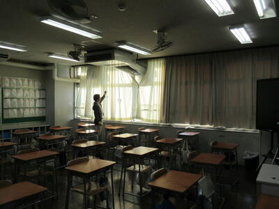 あるクラスでは「インフルエンザがこれ以上流行らないように」とクラスの湿度を上げるため、カーテンに霧吹きで水をかけている先生がいました。