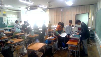 8:30~8:40の間、みんな積極的に英語のKOTODAMAの暗唱しています