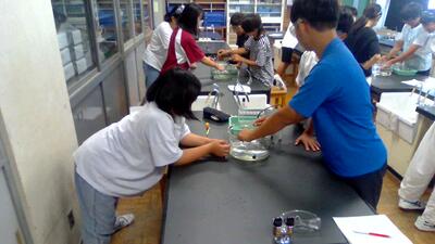1年生の理科の実験の授業です。