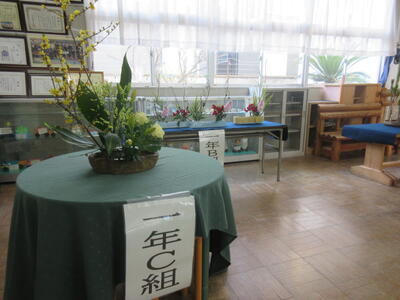 何が変わっているのかよく見てみると、12月18日に1年生が伝統文化の授業で生けた生け花のつぼみが大きく花開いていました。