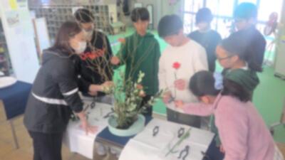 10月に茶道体験をしていたグループが、今回華道体験で作品をつくりました。