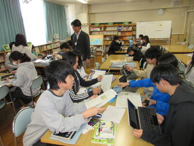 生徒はそれぞれ自分が調べたテーマについて、どうしたらわかりやすく伝わるかを考えながら、発表の仕方を工夫していました。
