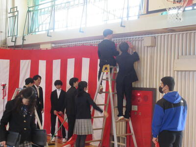 体育館の飾りつけや校内の掃除など、生徒たちは先輩として新入生を向かえる準備をよく頑張っていました。
