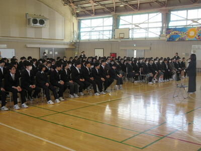 学年集会では学年の先生からお話を頂き、集中して聞いている人が多く見受けられました。