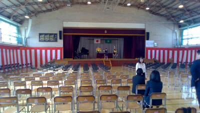 入学式に向けて、椅子を運び、礼法の確認と歌の練習を行いました。
